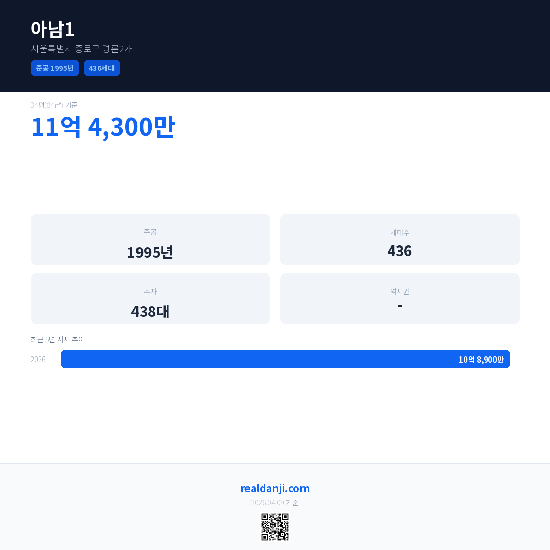 아남1 최근 거래가는 11억 4,300만입니다. (2026-04)