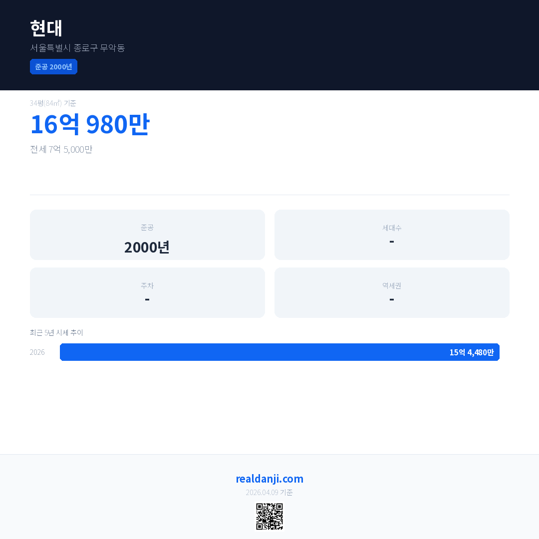 현대 최근 거래가는 16억 980만입니다. (2026-03)