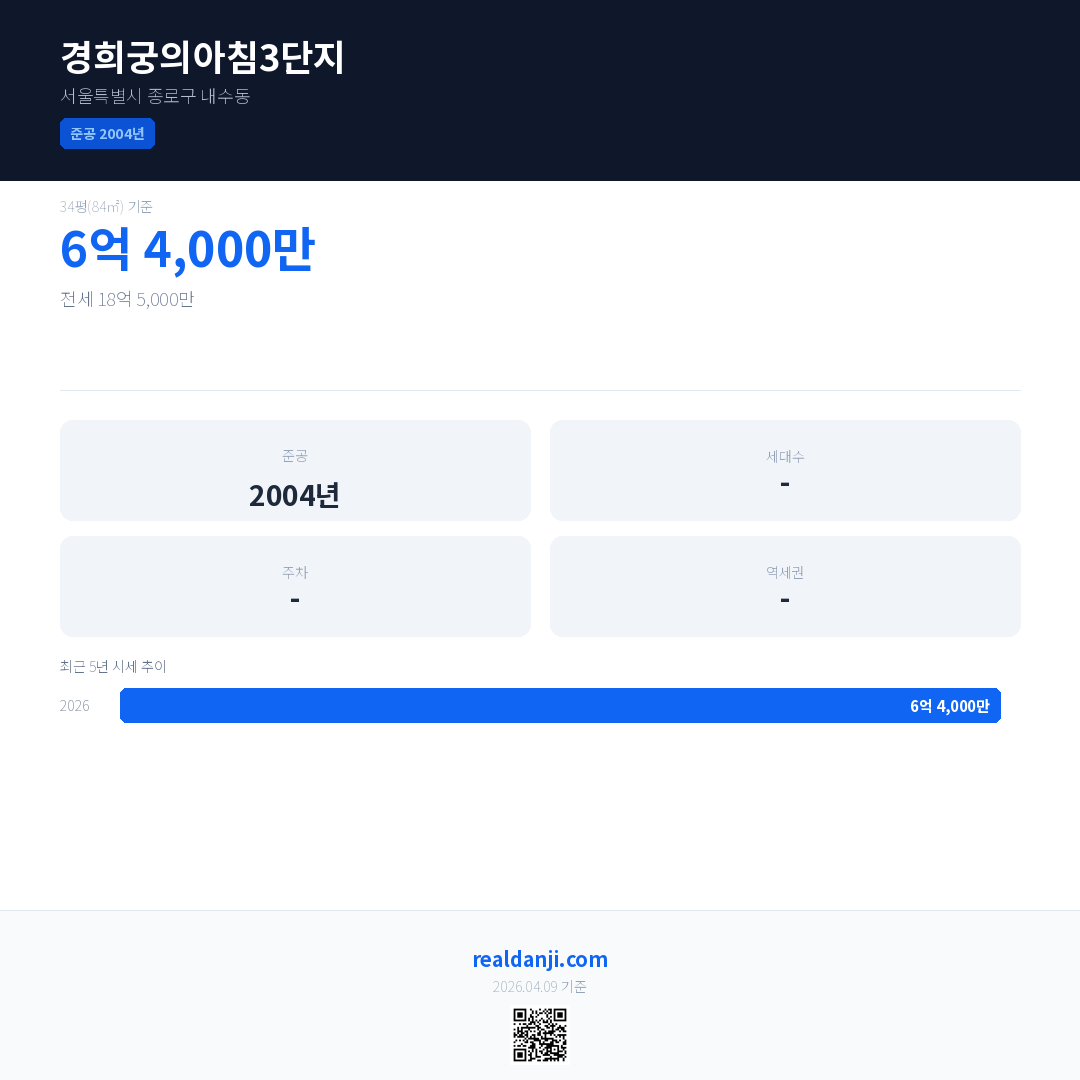 경희궁의아침3단지은(는) 2004년에 준공되었으며, 현재 22년차입니다.