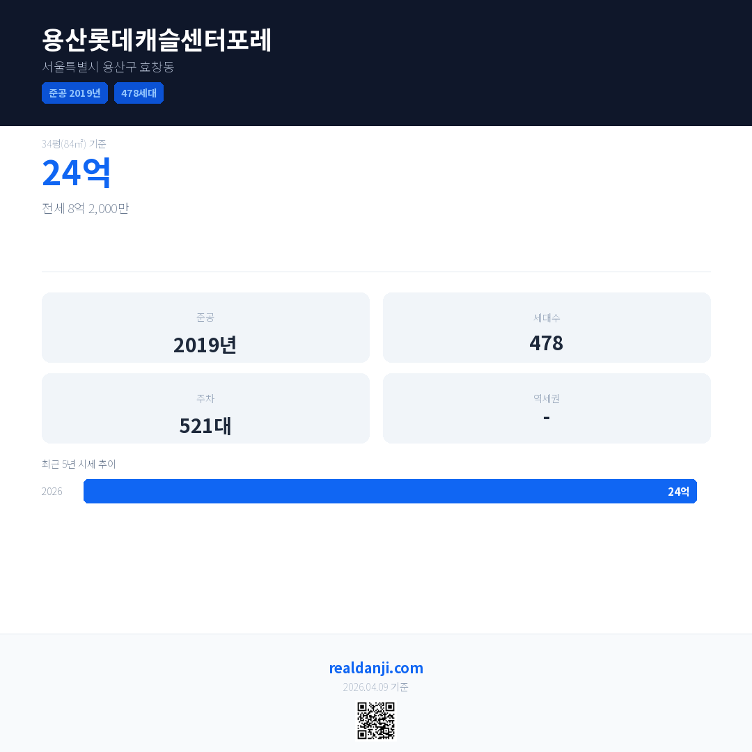 용산롯데캐슬센터포레 최근 거래가는 24억입니다. (2026-03)