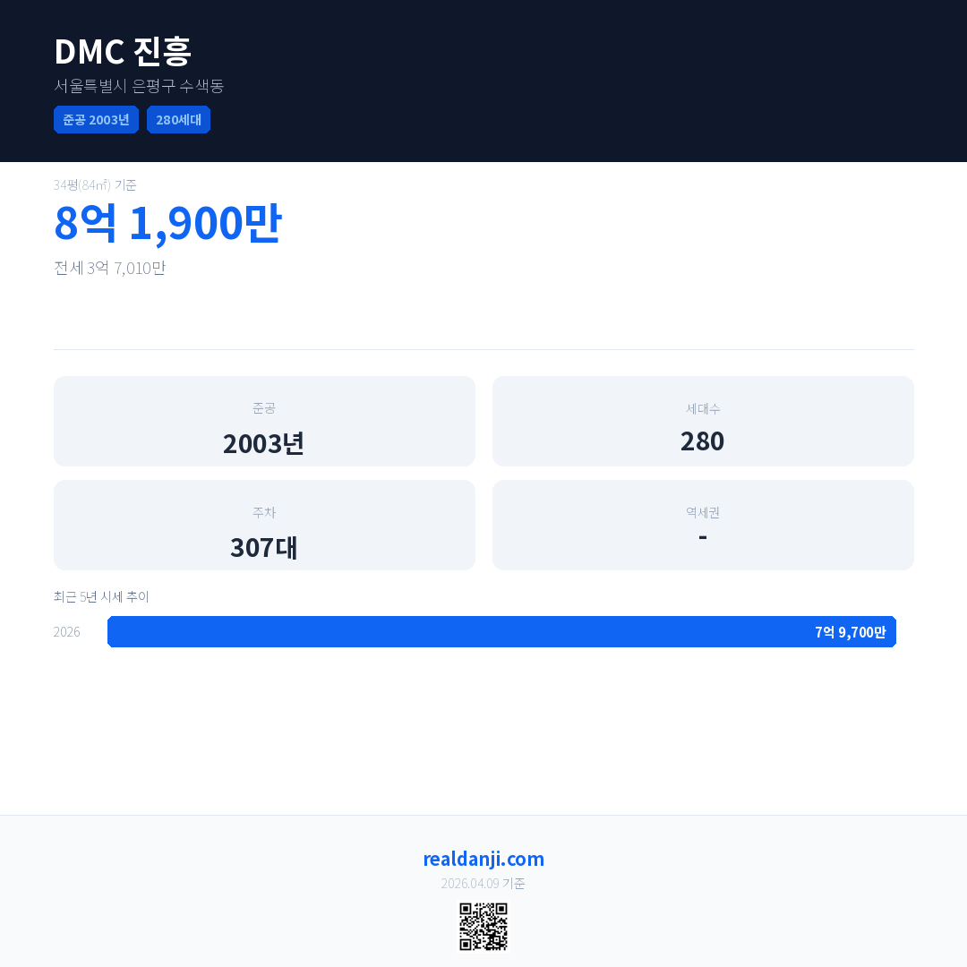 DMC 진흥 최근 거래가는 8억 1,900만입니다. (2026-04)
