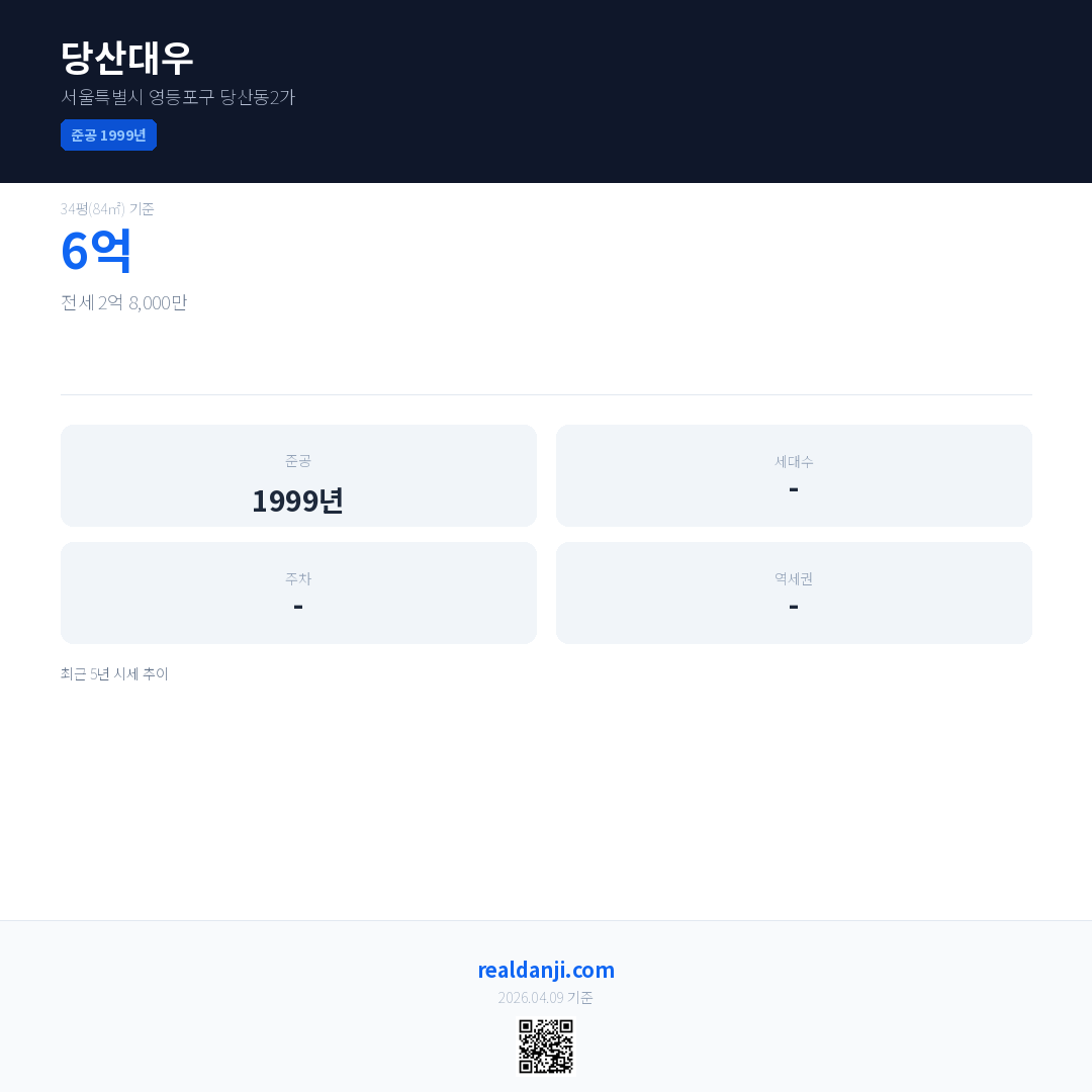 당산대우 최근 거래가는 6억입니다. (2026-04)