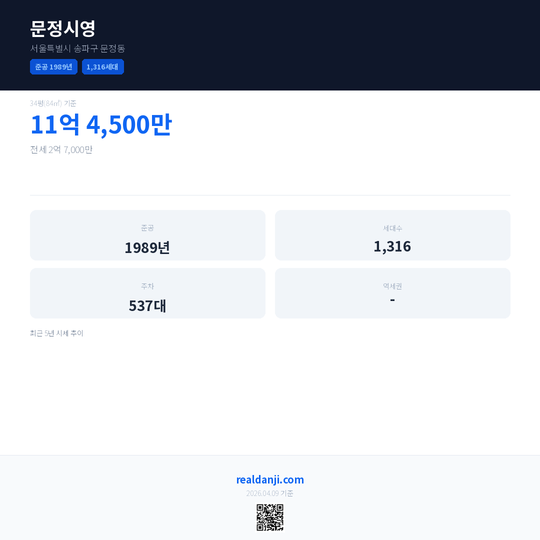 문정시영 최근 거래가는 11억 4,500만입니다. (2026-04)