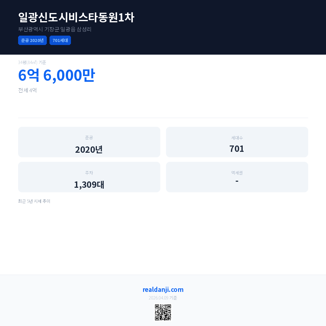 일광신도시비스타동원1차 최근 거래가는 6억 6,000만입니다. (2026-03)