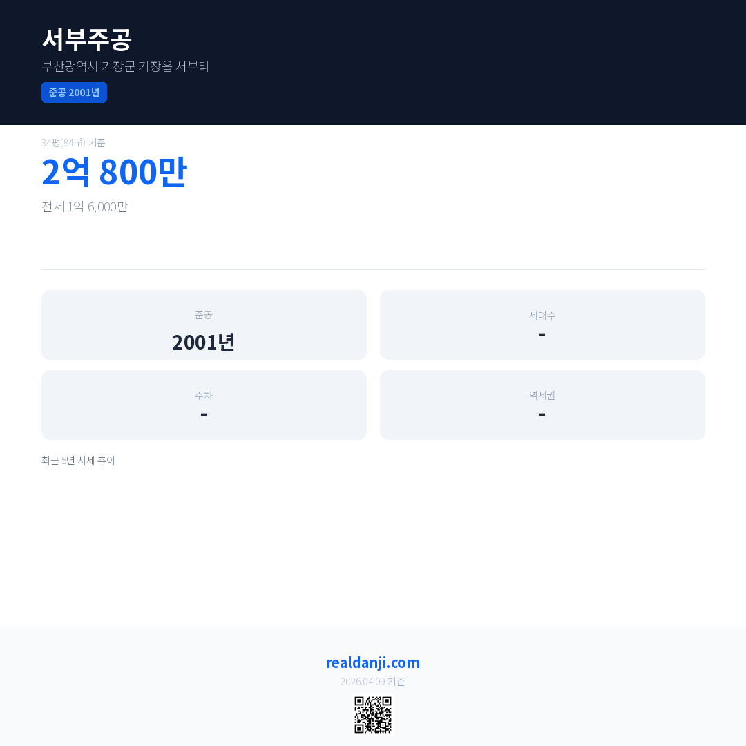 서부주공 최근 거래가는 2억 800만입니다. (2026-04)