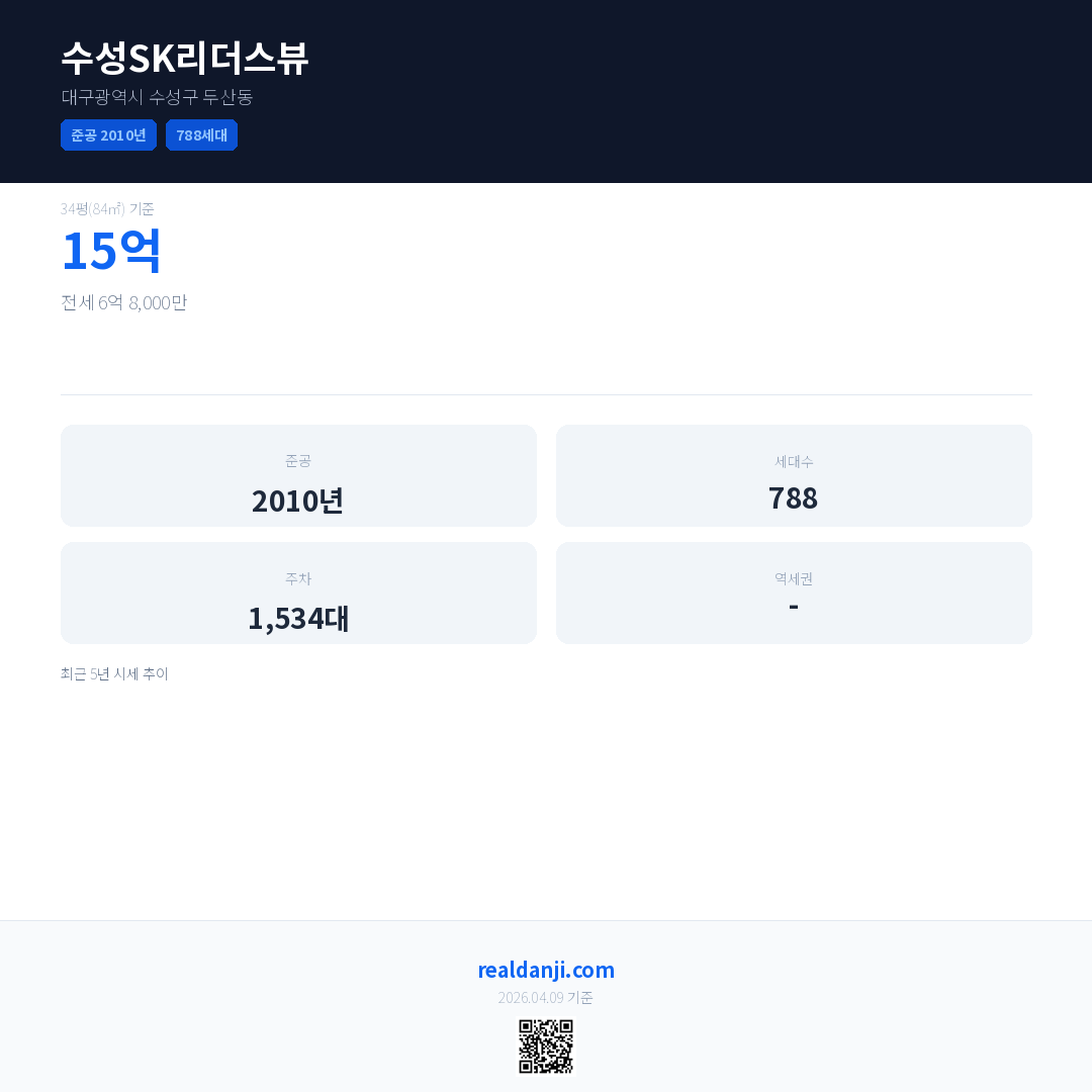 수성SK리더스뷰 최근 거래가는 15억입니다. (2026-04)