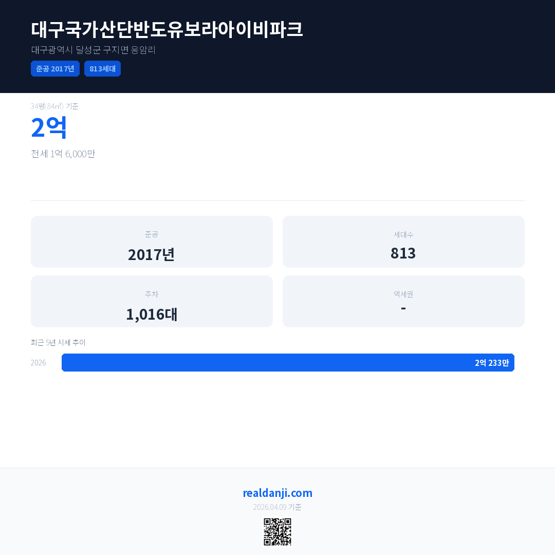 대구국가산단반도유보라아이비파크은(는) 2017년에 준공되었으며, 현재 9년차입니다.