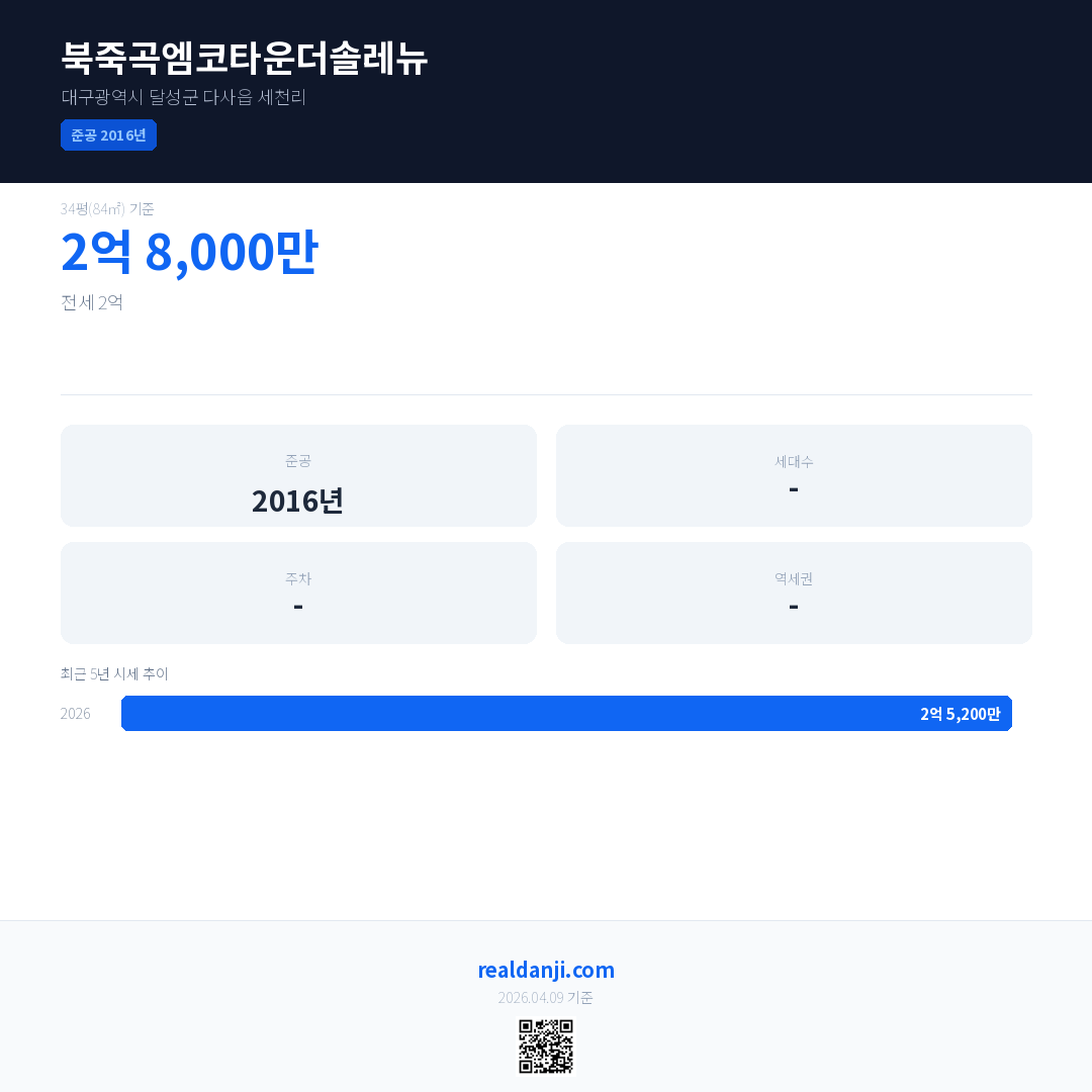 북죽곡엠코타운더솔레뉴 최근 거래가는 2억 8,000만입니다. (2026-03)