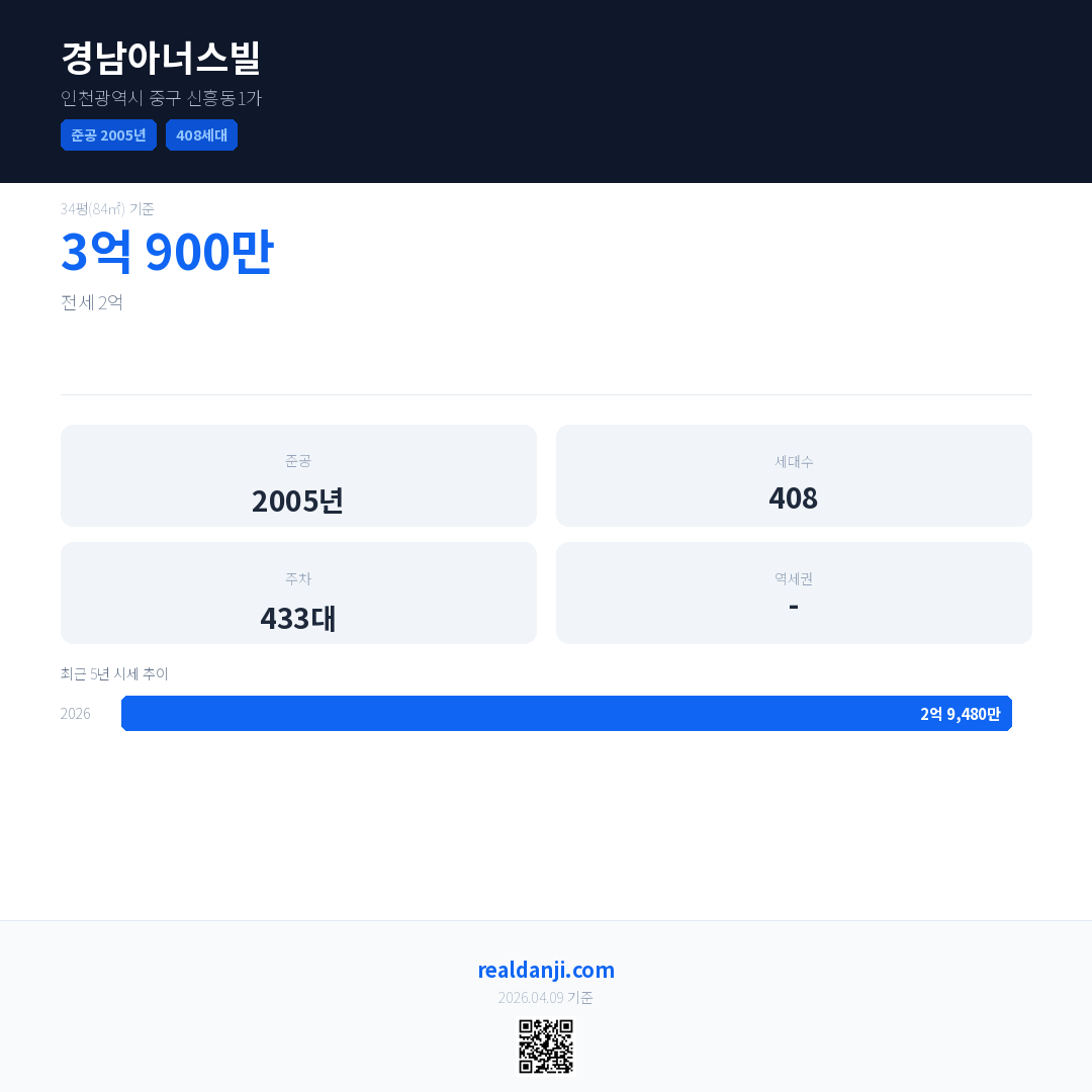 경남아너스빌 최근 거래가는 3억 900만입니다. (2026-04)
