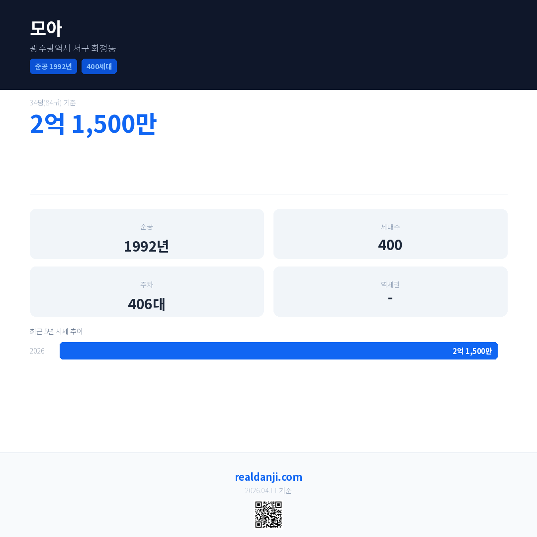 모아 최근 거래가는 2억 1,500만입니다. (2026-03)