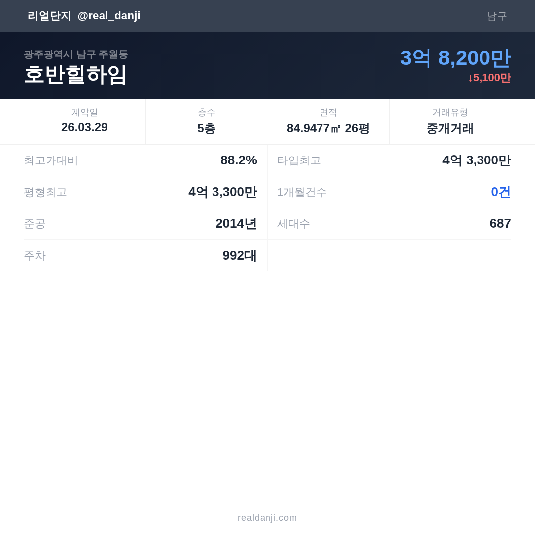 | 2026.03.29 | 85㎡ | 5층 | 3억 8,200만 |