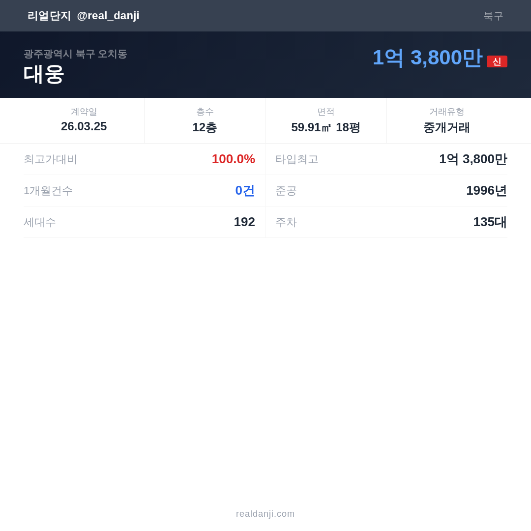 대웅 최근 거래가는 1억 3,800만입니다. (2026-03)
