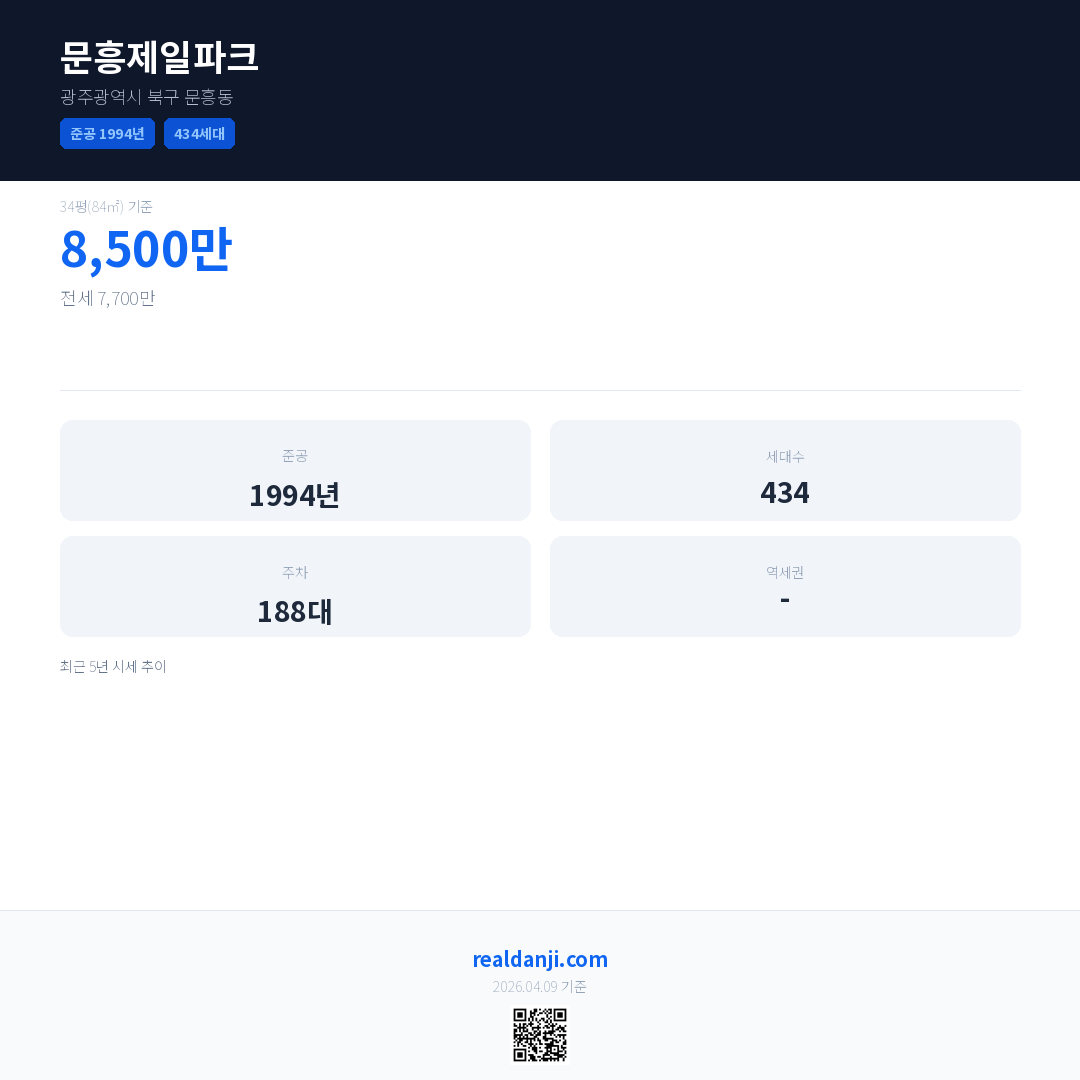 문흥제일파크 최근 거래가는 8,500만입니다. (2026-03)