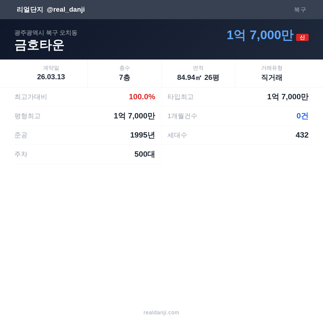 금호타운 최근 거래가는 1억 7,000만입니다. (2026-03)