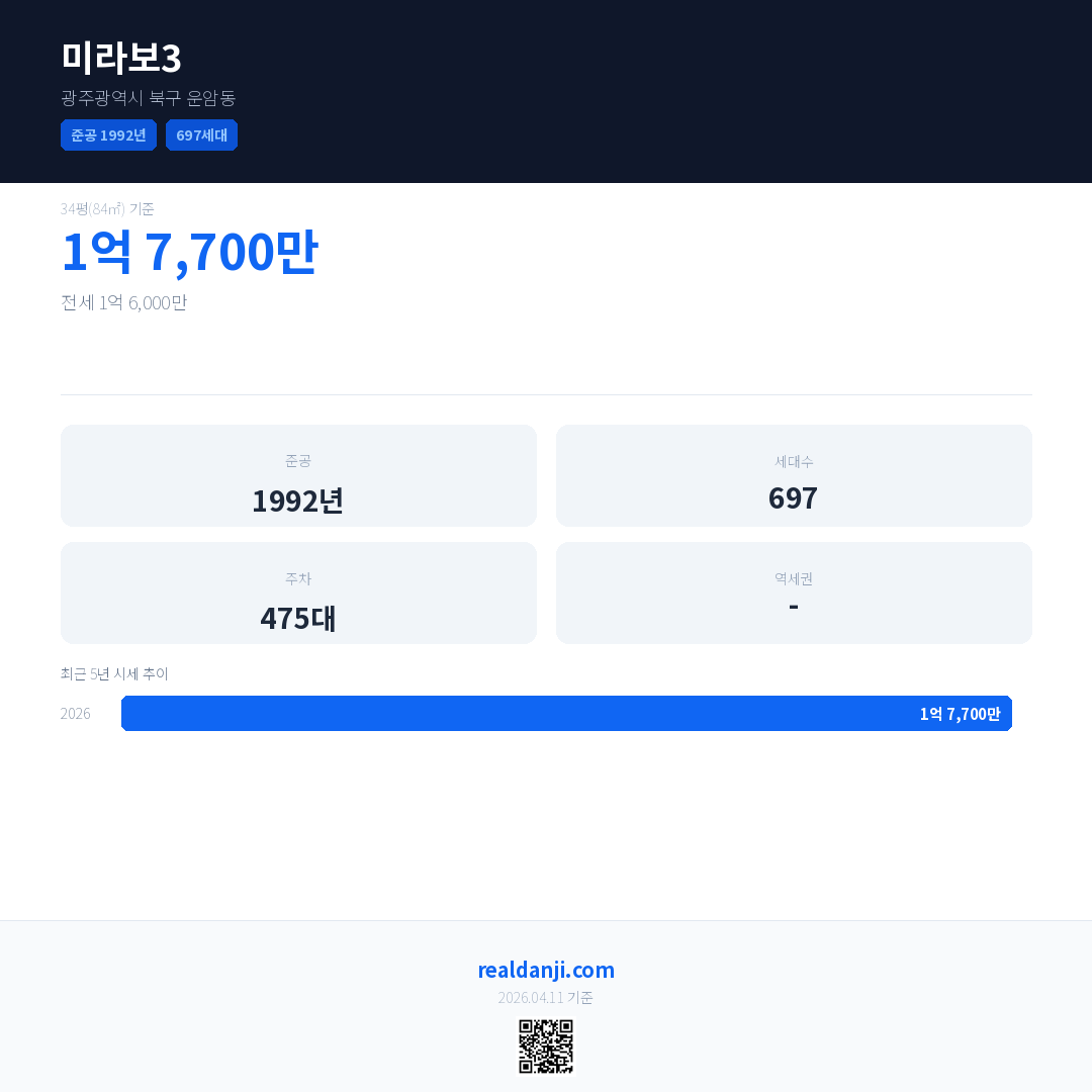 미라보3 최근 거래가는 1억 7,700만입니다. (2026-04)