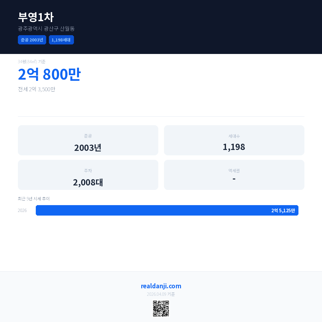 부영1차은(는) 2003년에 준공되었으며, 현재 23년차입니다.