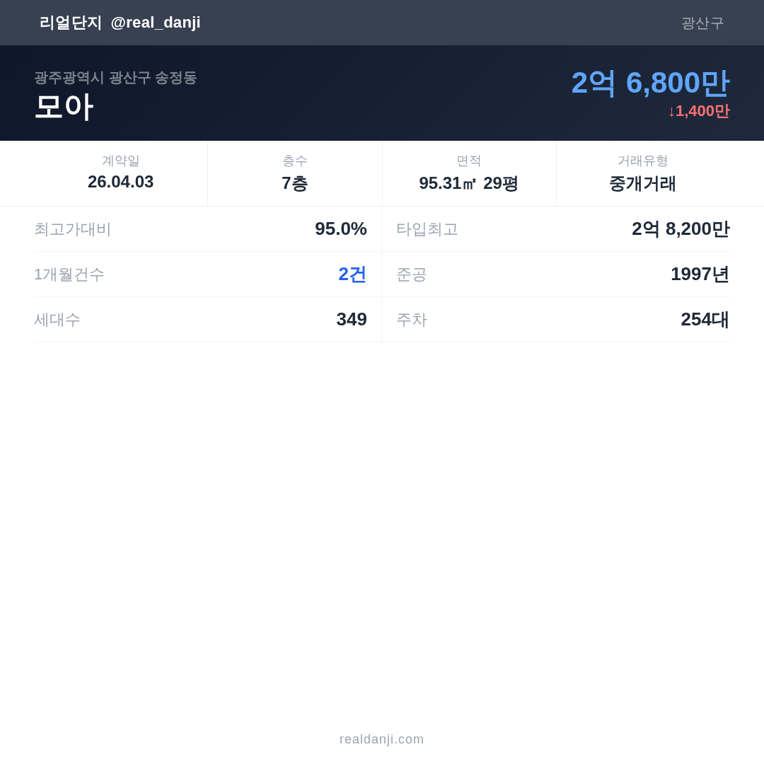 | 2026.04.03 | 95㎡ | 7층 | 2억 6,800만 |