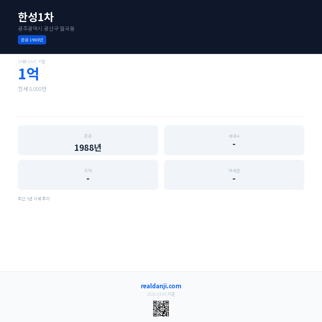 한성1차 최근 거래가는 1억입니다. (2026-04)