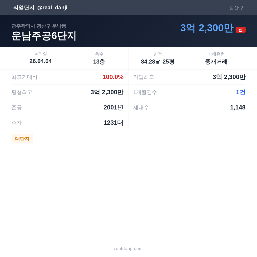 | 2026.04.04 | 84㎡ | 13층 | 3억 2,300만 |