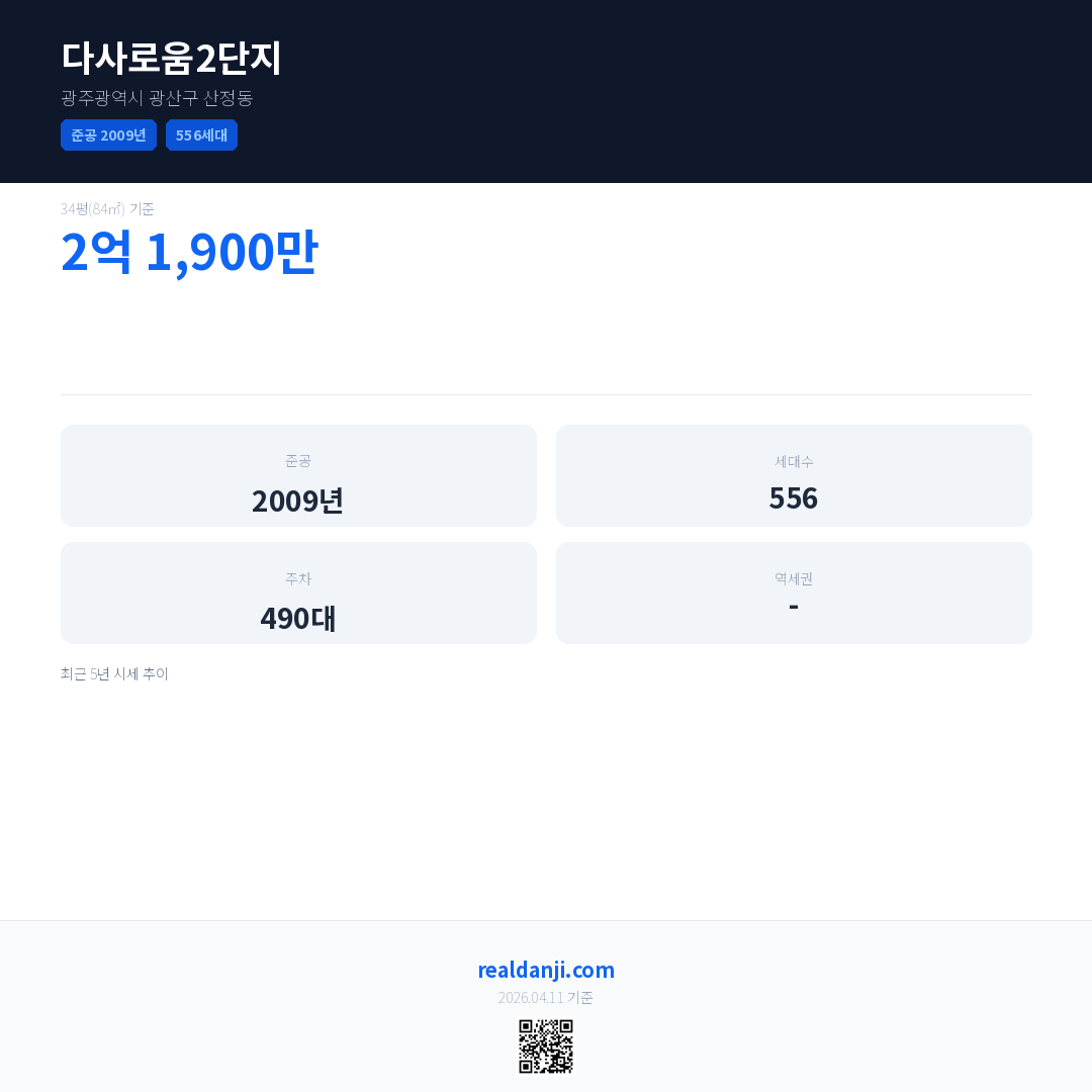 다사로움2단지 최근 거래가는 2억 1,900만입니다. (2026-04)