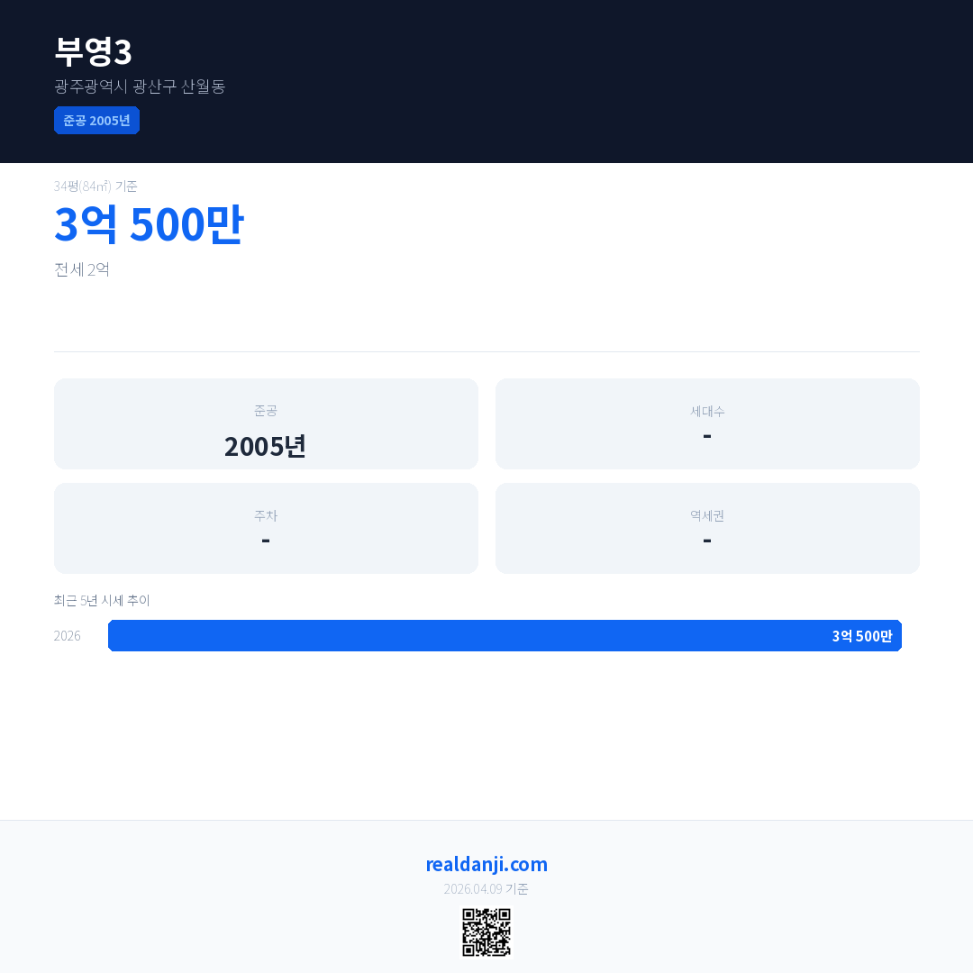 부영3 최근 거래가는 3억 500만입니다. (2026-04)