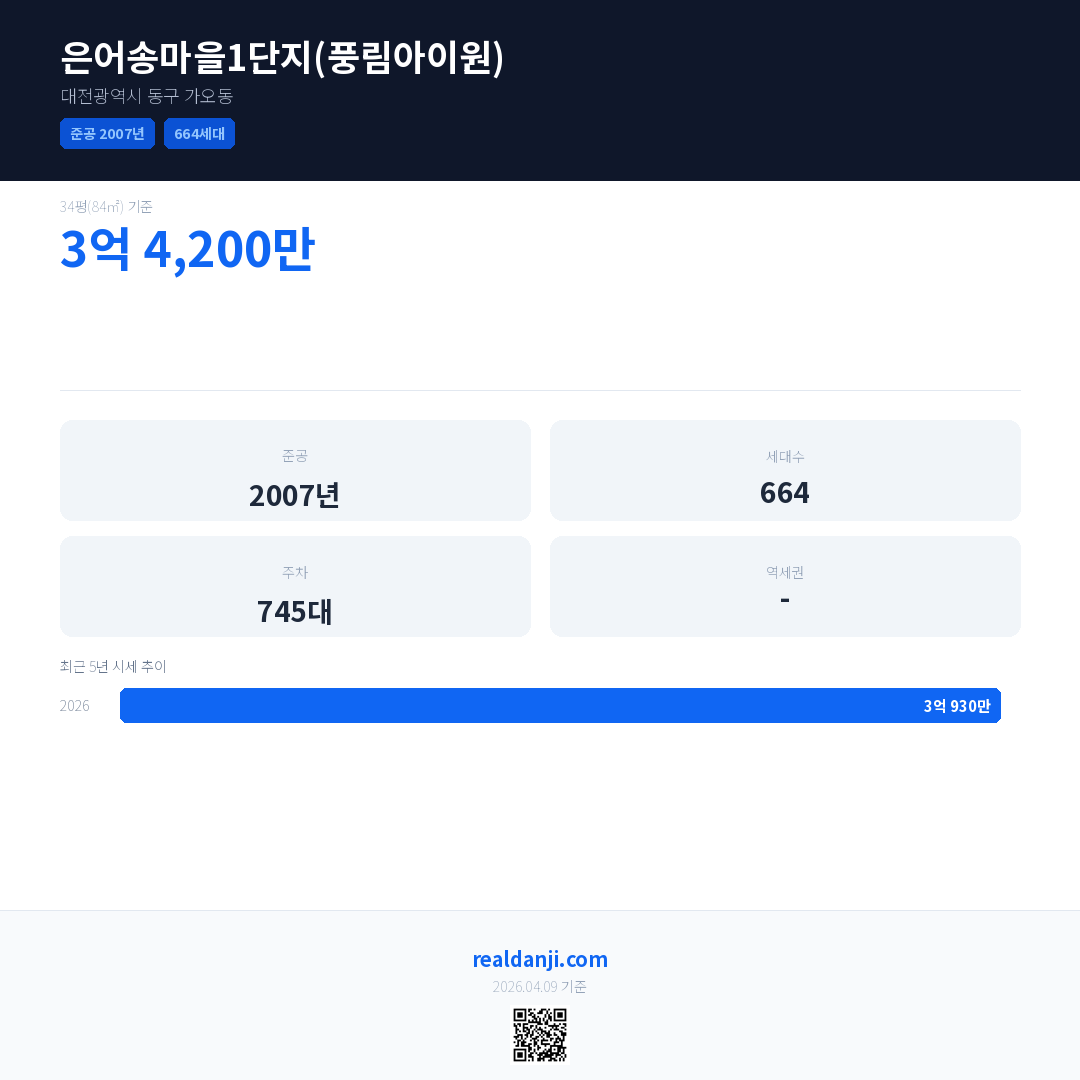 은어송마을1단지(풍림아이원) 최근 거래가는 3억 4,200만입니다. (2026-04)