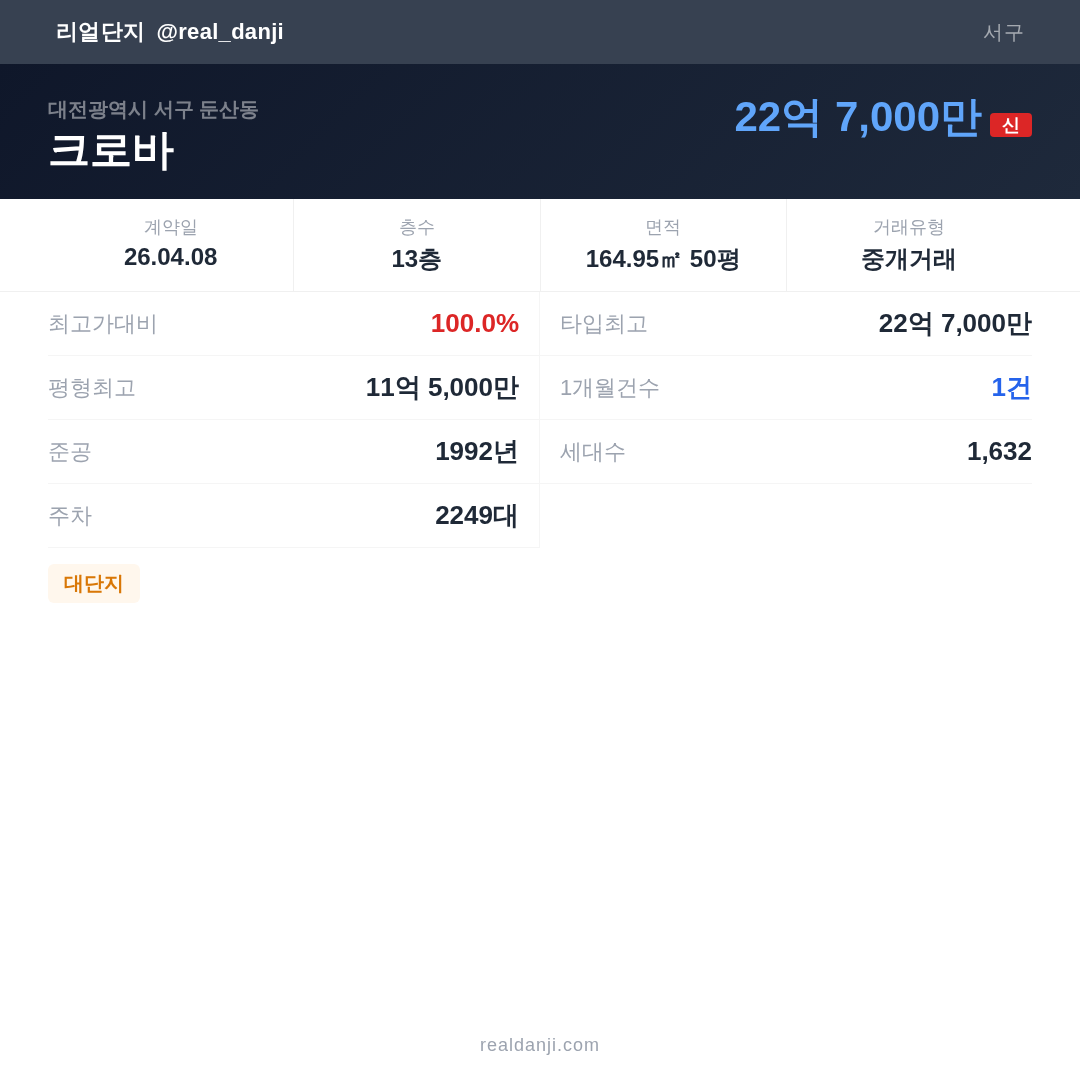 | 2026.04.08 | 165㎡ | 13층 | 22억 7,000만 |