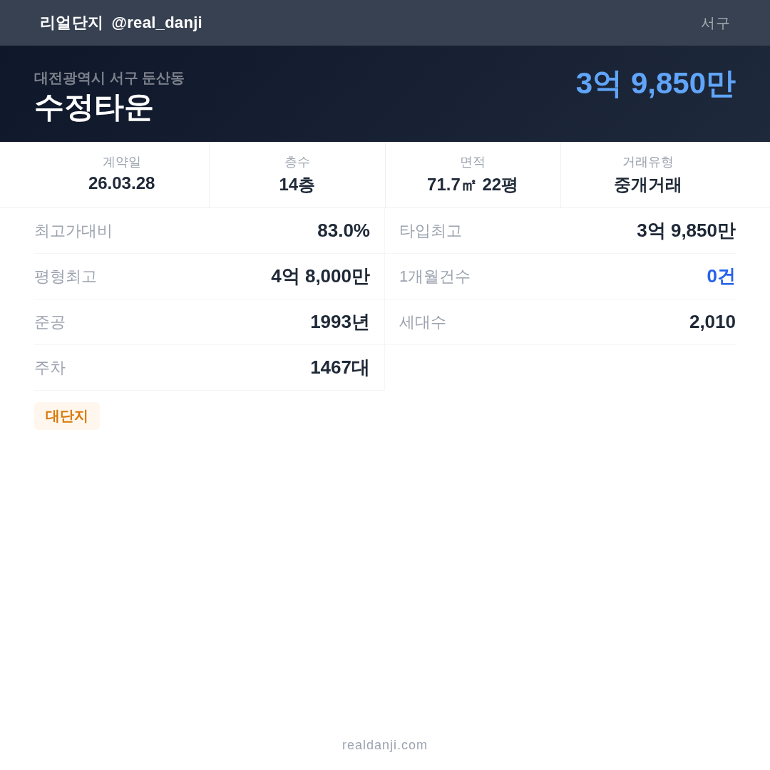 | 2026.03.28 | 72㎡ | 14층 | 3억 9,850만 |