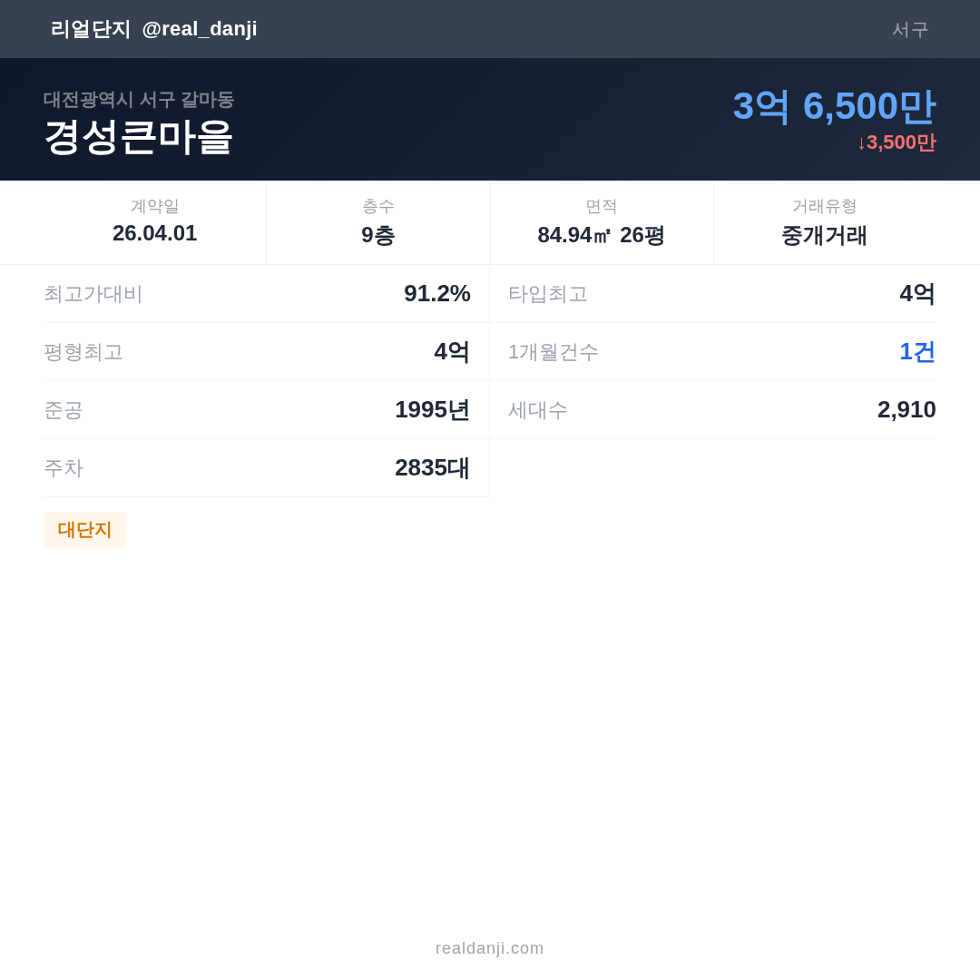 | 2026.04.01 | 85㎡ | 9층 | 3억 6,500만 |