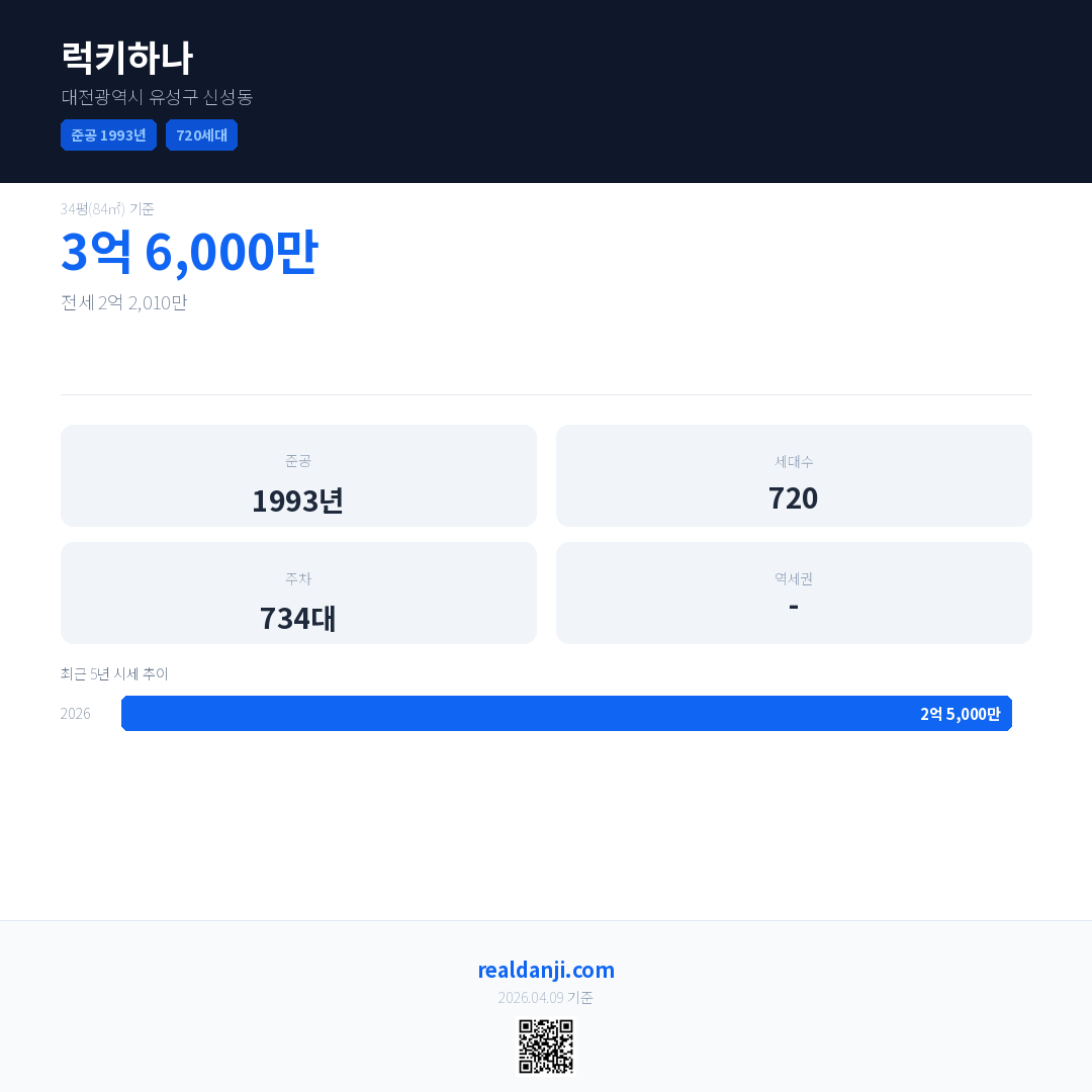럭키하나 최근 거래가는 3억 8,000만입니다. (2026-04)