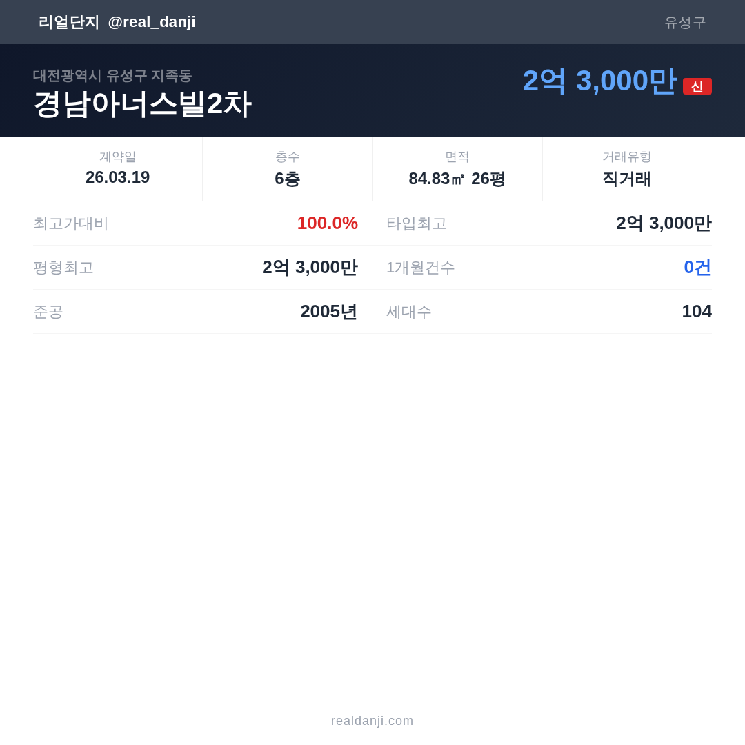 경남아너스빌2차 최근 거래가는 2억 3,000만입니다. (2026-03)