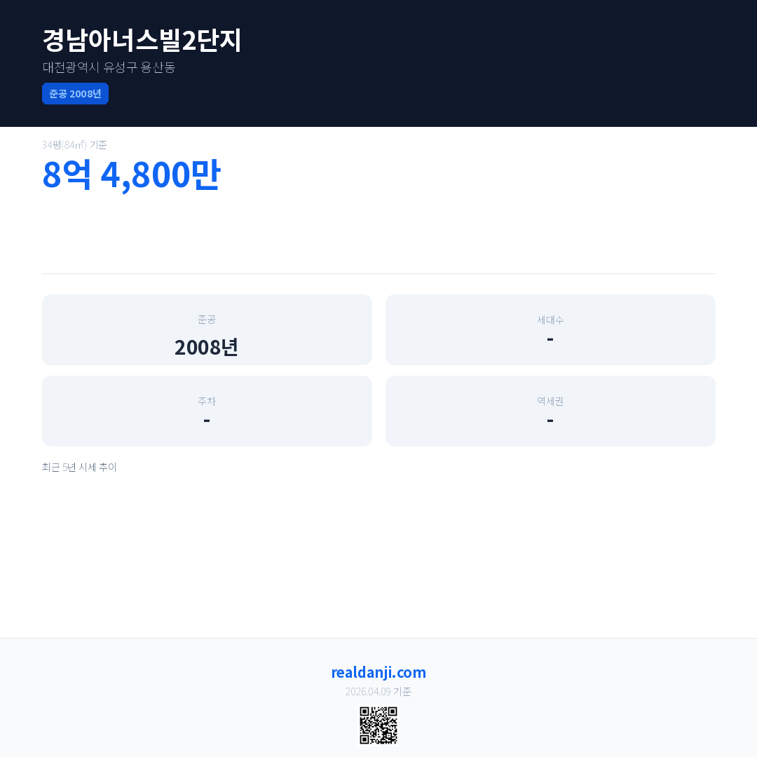 경남아너스빌2단지 최근 거래가는 8억 4,800만입니다. (2026-03)