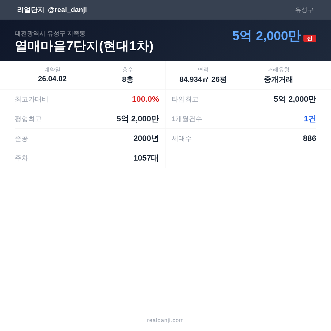 | 2026.04.02 | 85㎡ | 8층 | 5억 2,000만 |