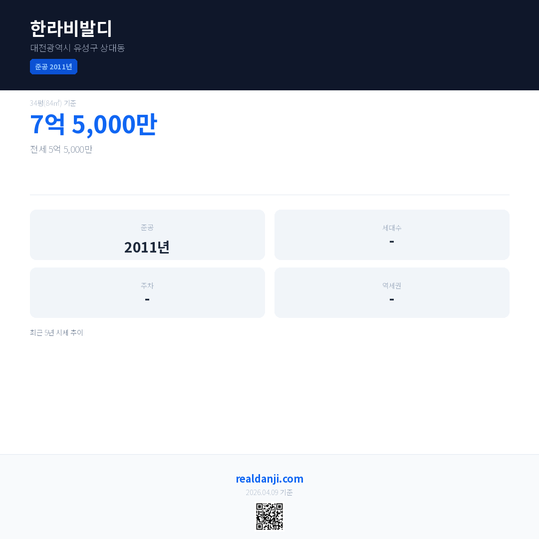 한라비발디 최근 거래가는 7억 5,000만입니다. (2026-04)