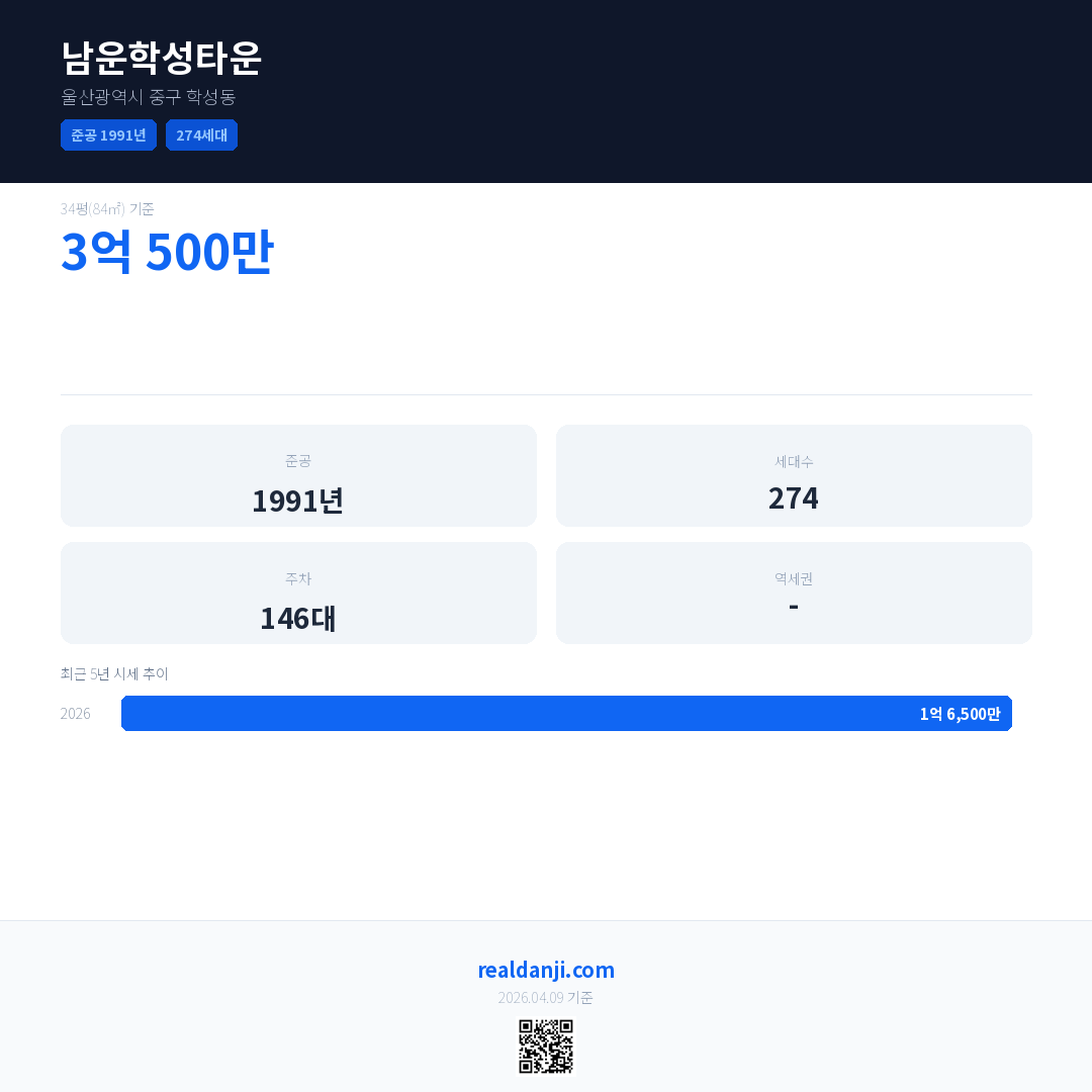남운학성타운 최근 거래가는 3억 500만입니다. (2026-04)