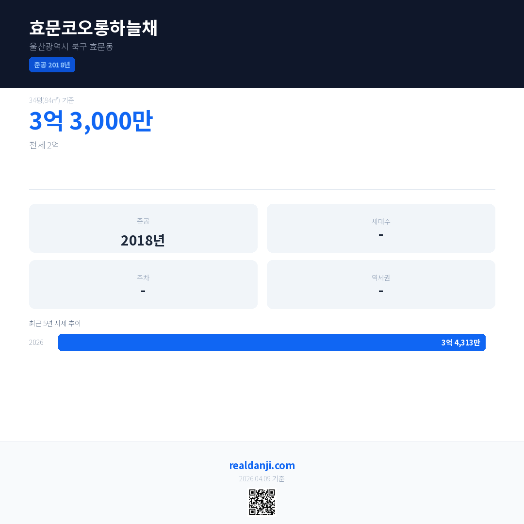효문코오롱하늘채 최근 거래가는 3억 7,300만입니다. (2026-04)