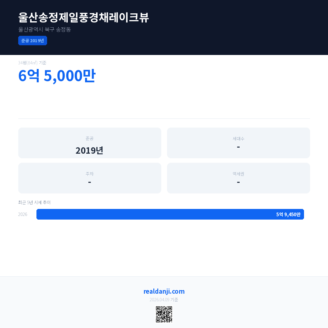 울산송정제일풍경채레이크뷰 최근 거래가는 6억 5,000만입니다. (2026-03)
