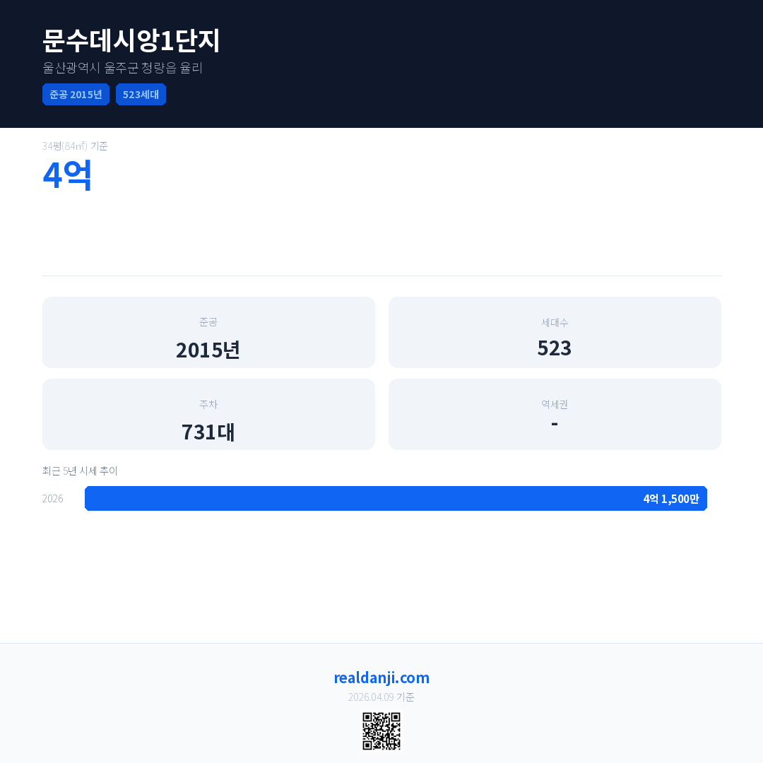 문수데시앙1단지 최근 거래가는 4억 3,000만입니다. (2026-03)