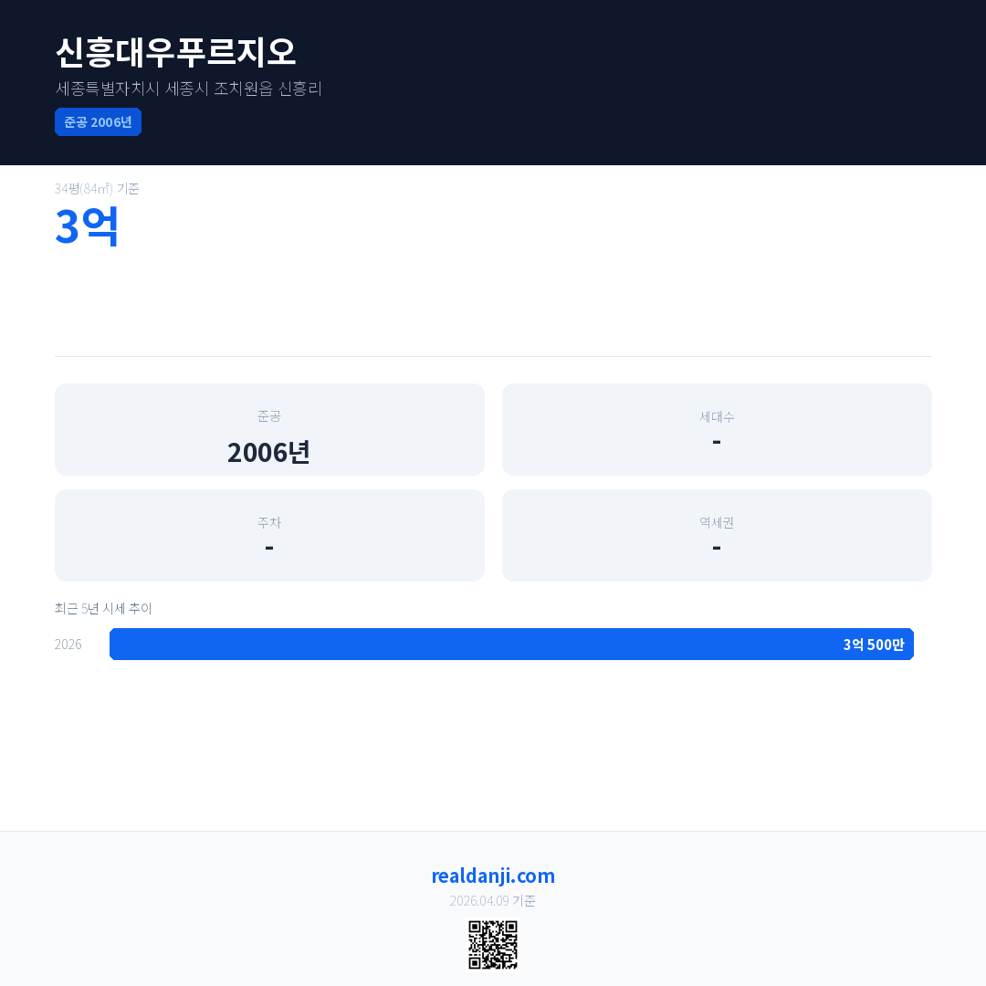 신흥대우푸르지오 최근 거래가는 3억 500만입니다. (2026-03)