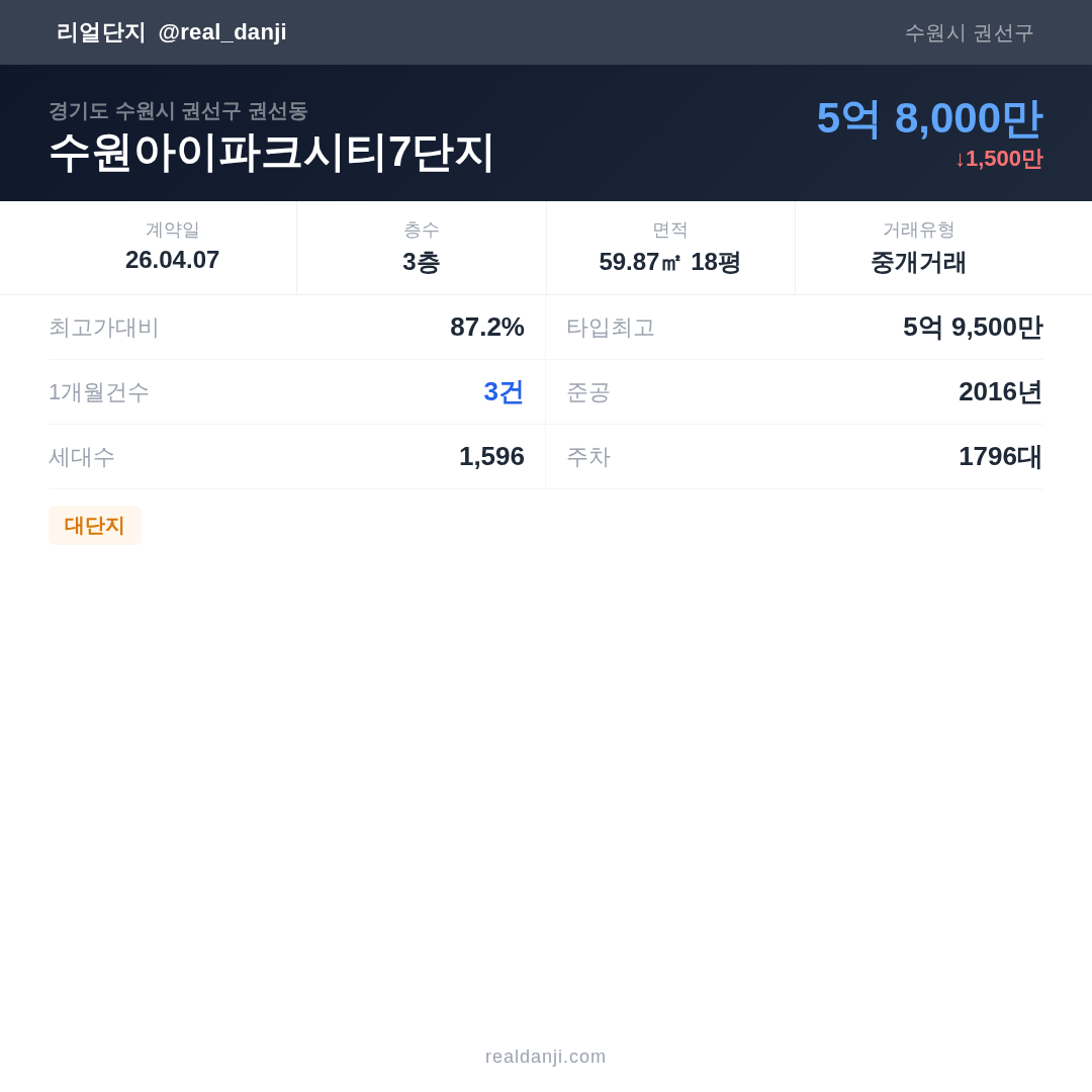 | 2026.04.07 | 60㎡ | 3층 | 5억 8,000만 |