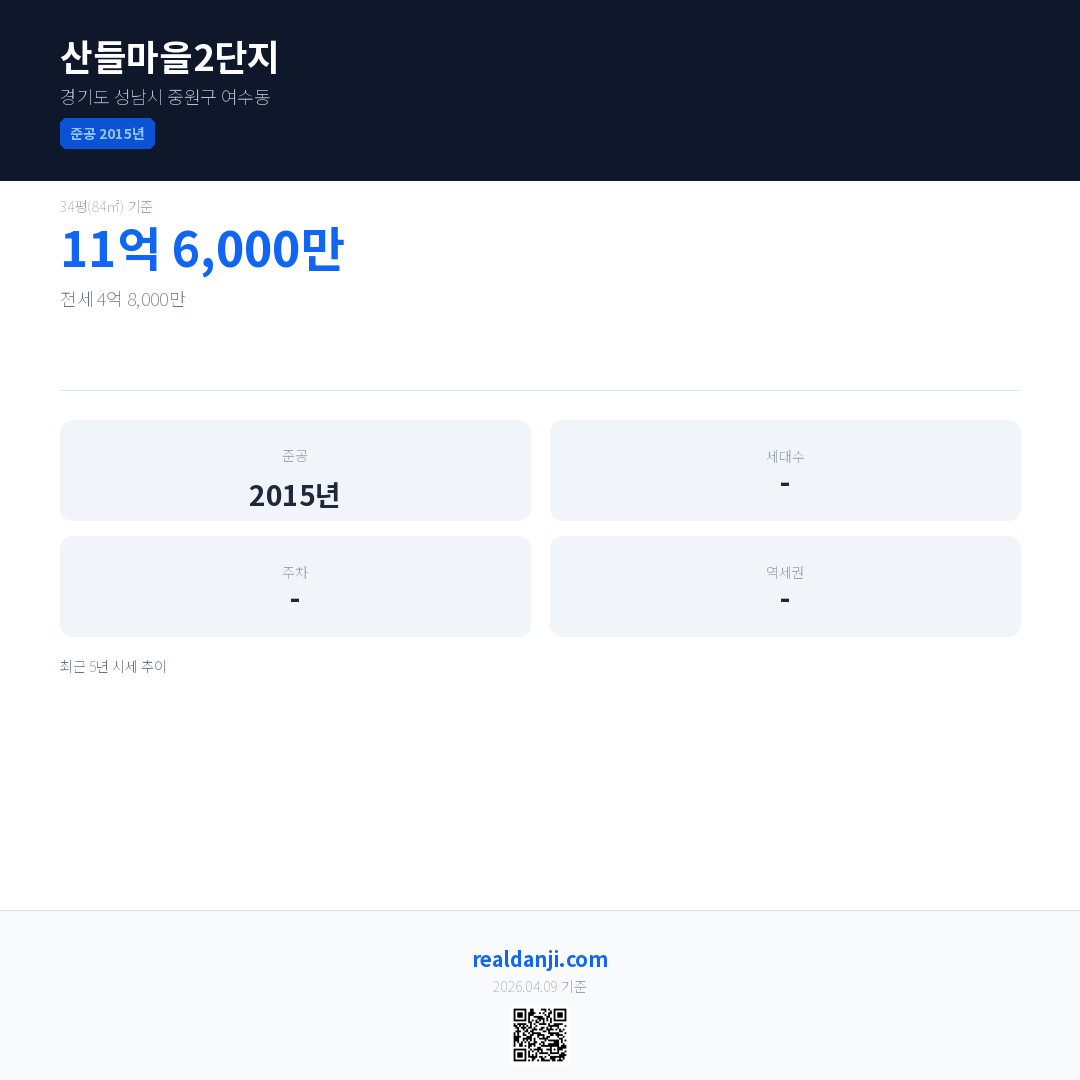 산들마을2단지 최근 거래가는 11억 6,000만입니다. (2026-03)