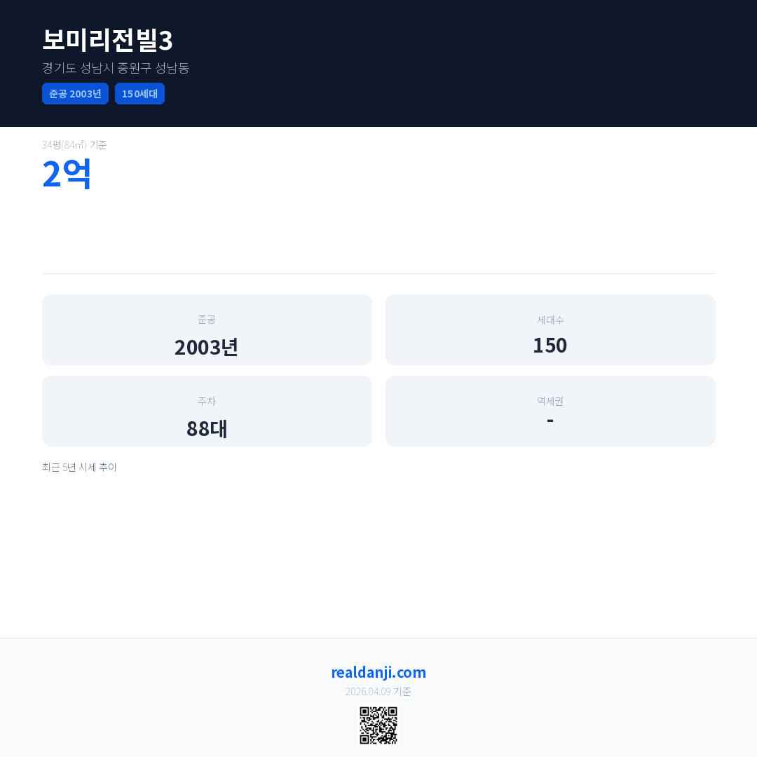 보미리전빌3 최근 거래가는 2억입니다. (2026-03)