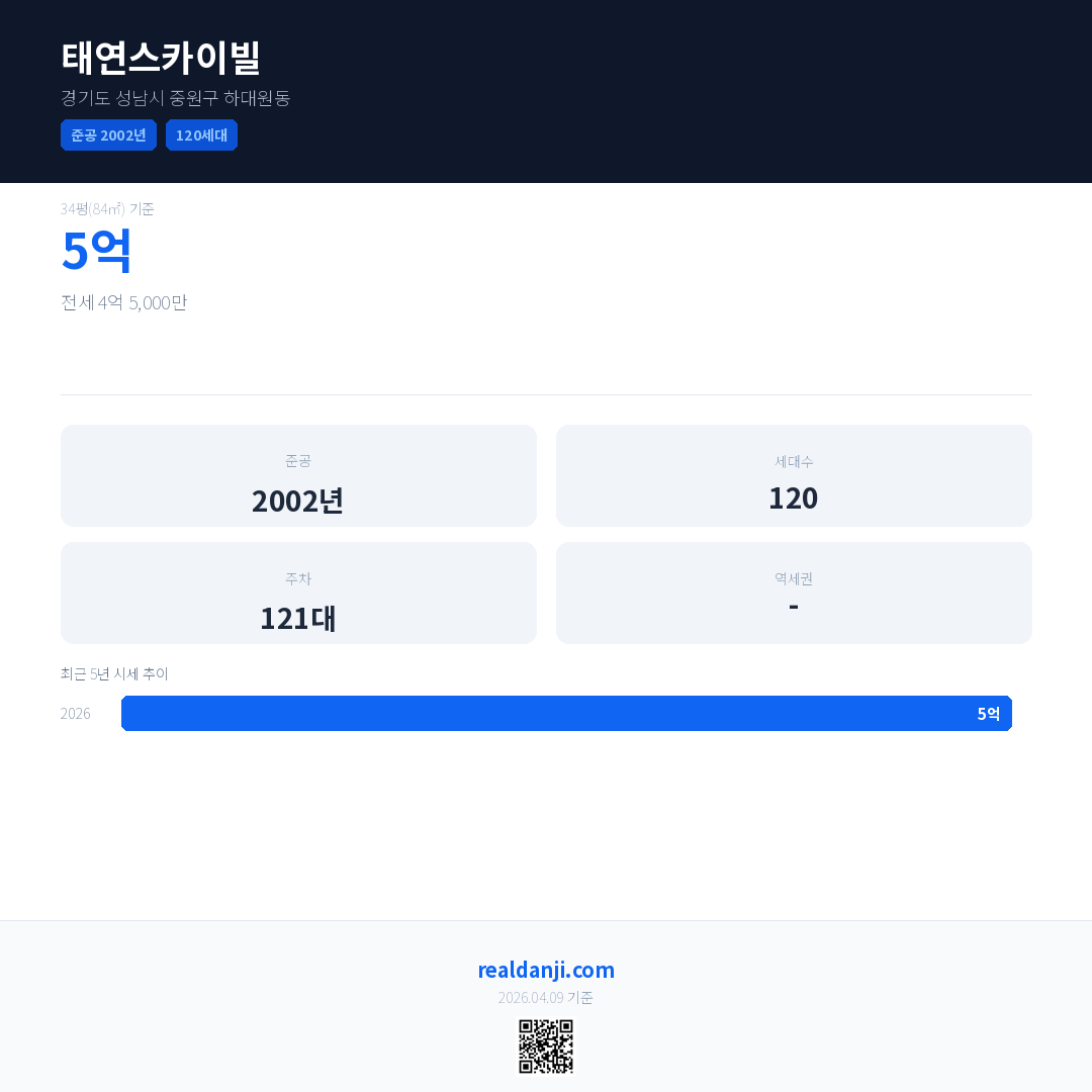 태연스카이빌 최근 거래가는 5억입니다. (2026-03)