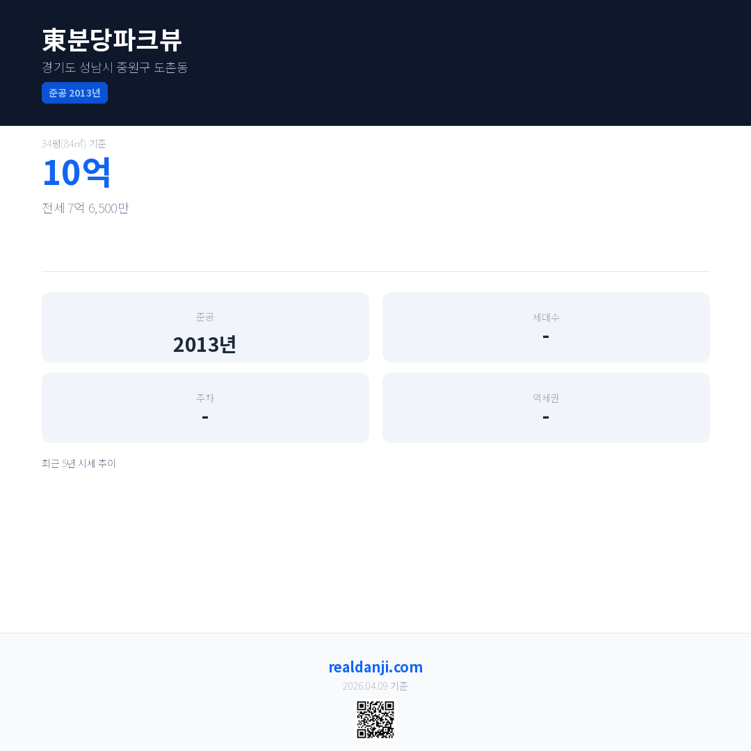 東분당파크뷰은(는) 2013년에 준공되었으며, 현재 13년차입니다.