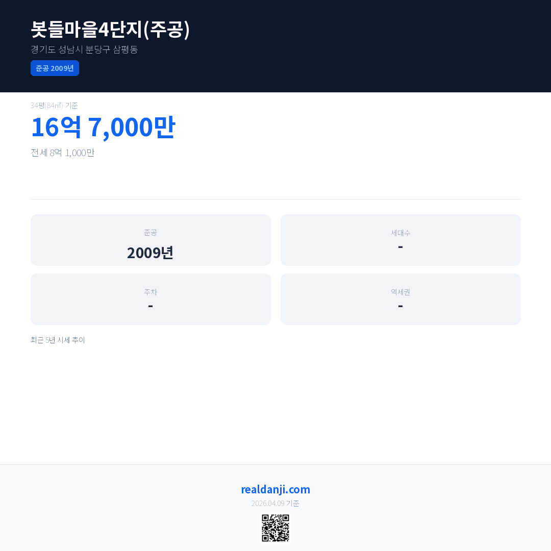 봇들마을4단지(주공) 최근 거래가는 16억 7,000만입니다. (2026-03)