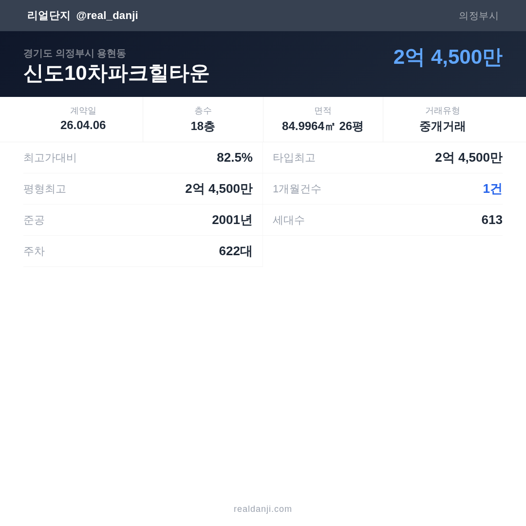 | 2026.04.06 | 85㎡ | 18층 | 2억 4,500만 |