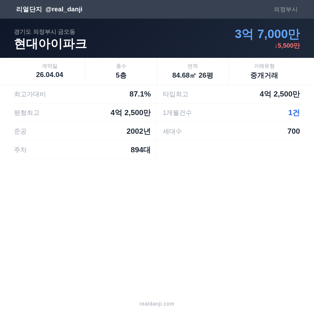 | 2026.04.04 | 85㎡ | 5층 | 3억 7,000만 |