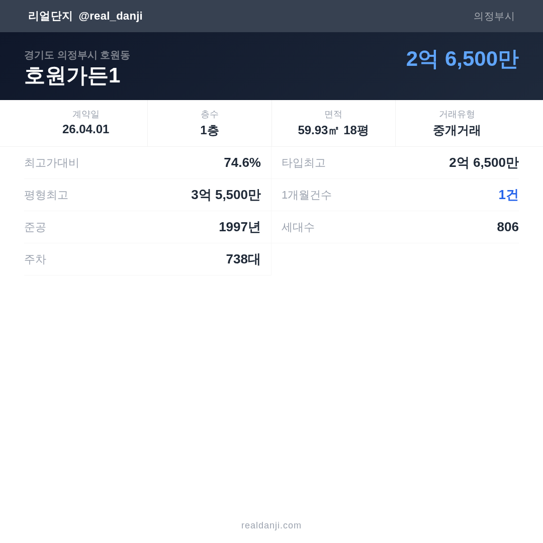 | 2026.04.01 | 60㎡ | 1층 | 2억 6,500만 |