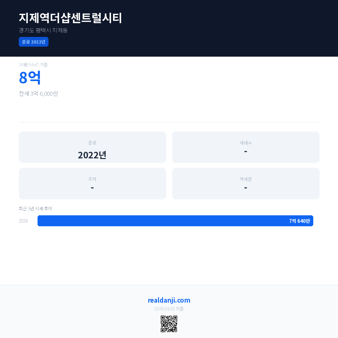 지제역더샵센트럴시티 최근 거래가는 8억입니다. (2026-03)