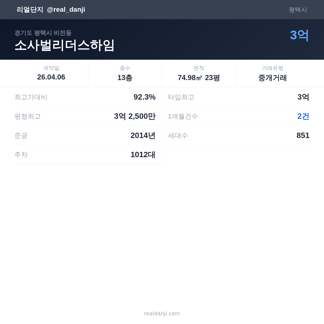 | 2026.04.06 | 75㎡ | 13층 | 3억 |